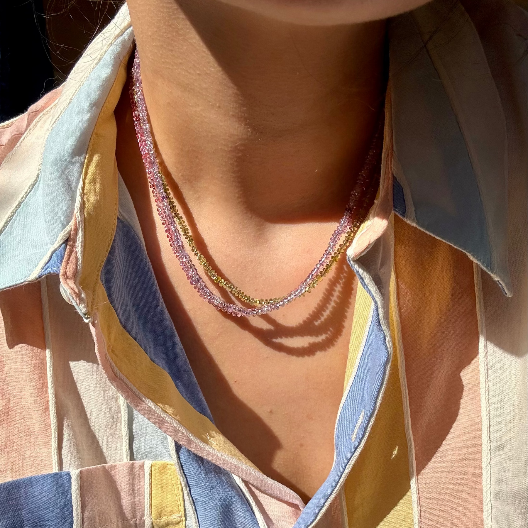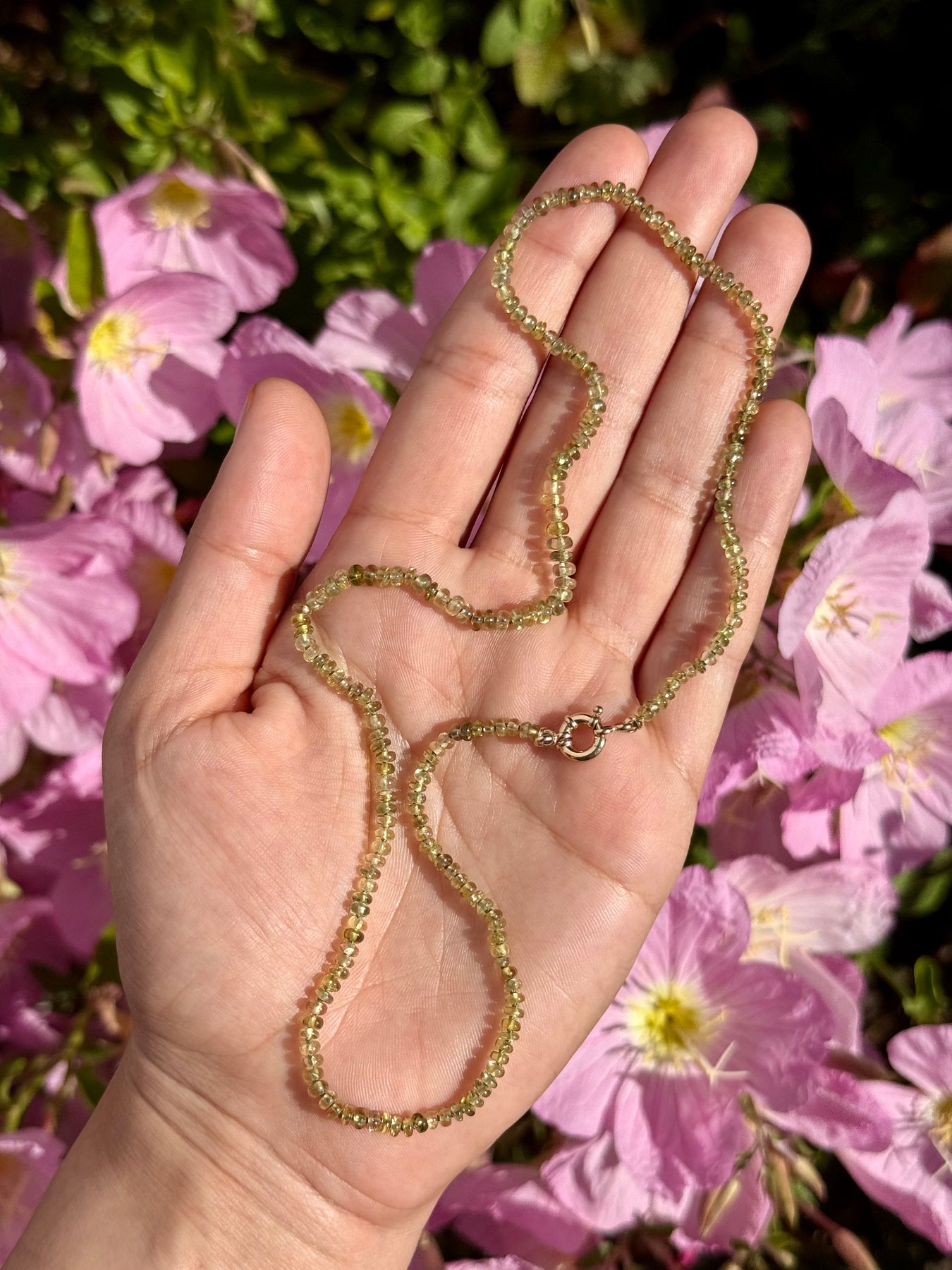 Do not hang beaded gemstone jewelry as it may stretch or damage the stringing material. Store flat in a cool and dry location.
